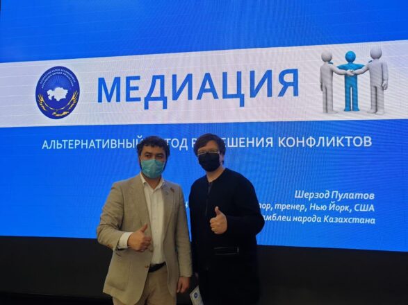 Тема по медиации: «Медиация- платформа для конструктивного диалога». Тренер: Пулатов Шерзод Аббозович, Заместитель Председателя Ассамблеи народа Казахстана, тренер – медиатор, исполнительный директор международного центра права и медиации «Согласие»; руководитель международного отдела Федерации профсоюзов Республики Казахстан , г.Нур-Султан.